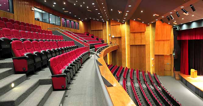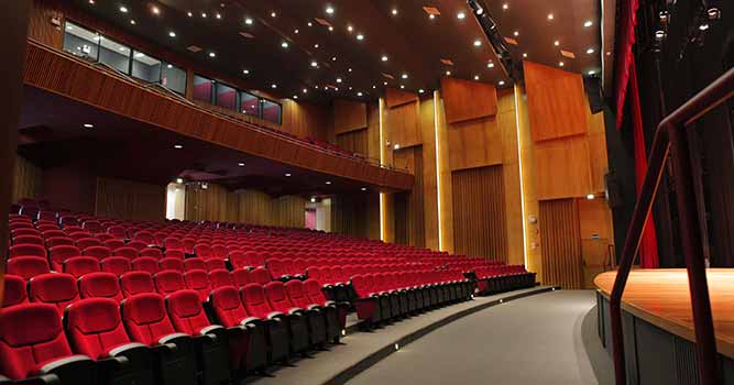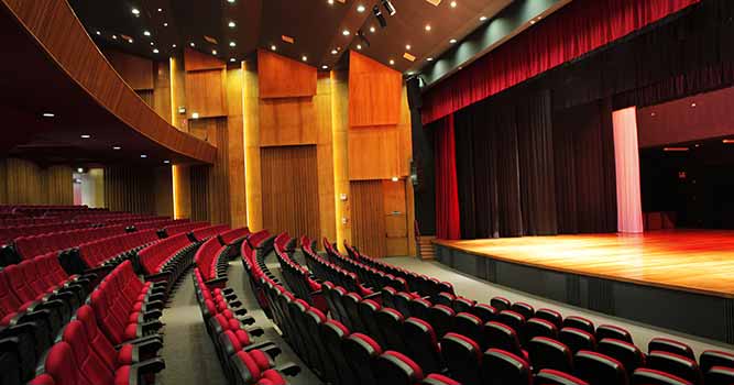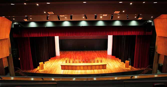 Su amplio escenario ofrece condiciones ideales para la presentación de diversas artes escénicas como la música, el teatro y la danza. Su cuidado tratamiento acústico brinda un adecuado balance sonoro apreciable desde cualquier punto de la sala.