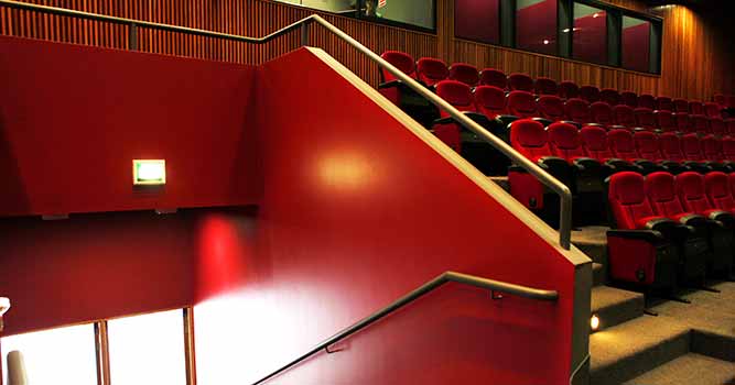 - Butacas, tramoya, bambalinas, cortinas de fondo y telón de material ignífugo.