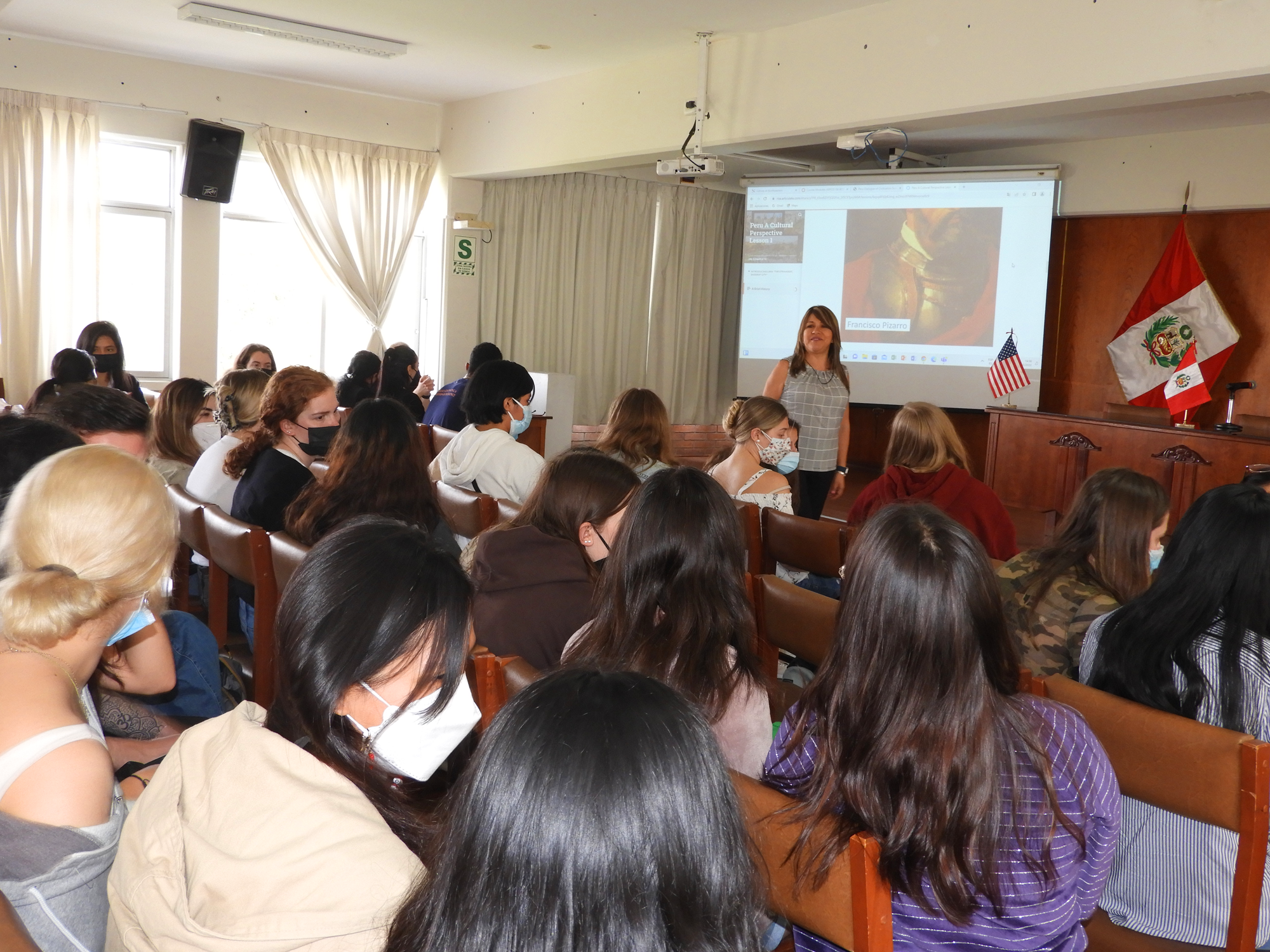 Como en anteriores oportunidades y, luego de dos años de pandemia, estudiantes de Northeastern University y estudiantes de la Escuela Profesional de Traducción e Interpretación de UNIFÉ realizan una visita académica a nuestro campus para llevar a cabo el Proyecto de Intercambio lingüístico y cultural organizado por la Facultad de Traducción, Interpretación y Ciencias de la Comunicación junto con la Comisión Ejecutiva de Cooperación y Relaciones Internacionales. Este año, la experiencia fue adecuada a un formato híbrido y los estudiantes tuvieron encuentros tanto virtuales como presenciales. |